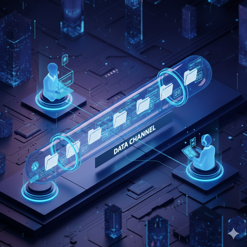 O WebRTC não é só para Zoom. Ele possui uma API chamada Data Channel, que permite enviar dados arbitrários (JSON, arquivos, binários) entre navegadores com baixíssima latência.
